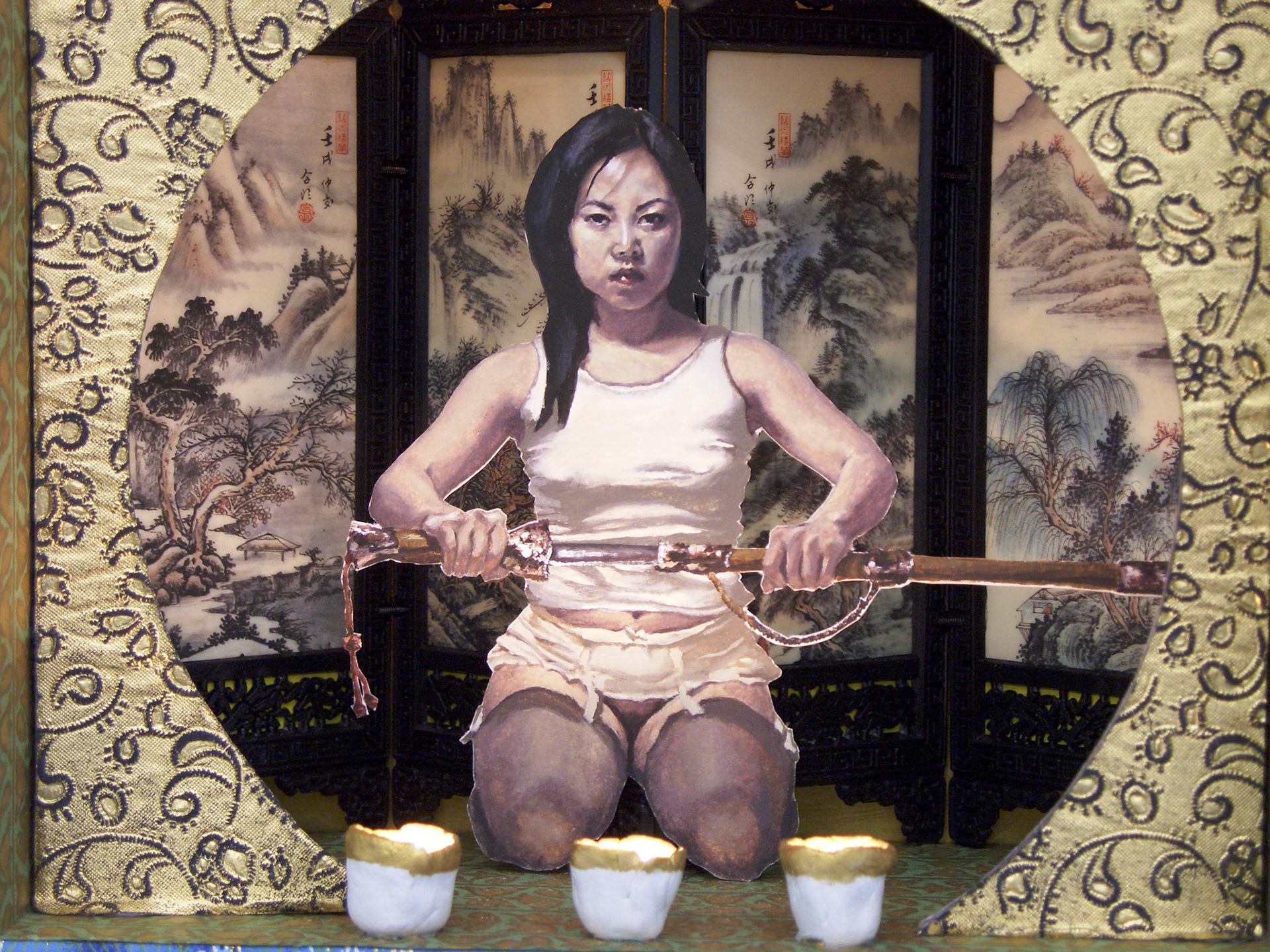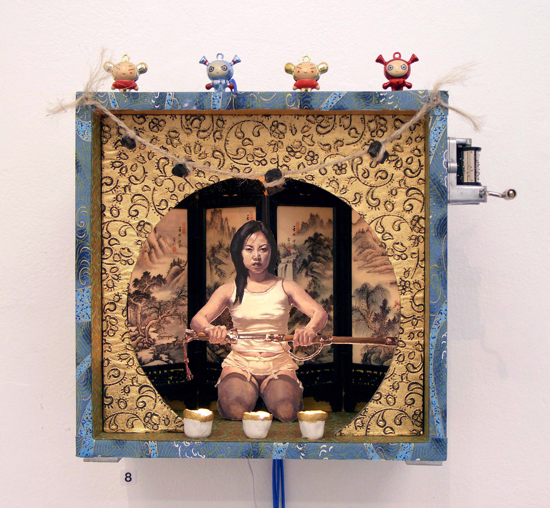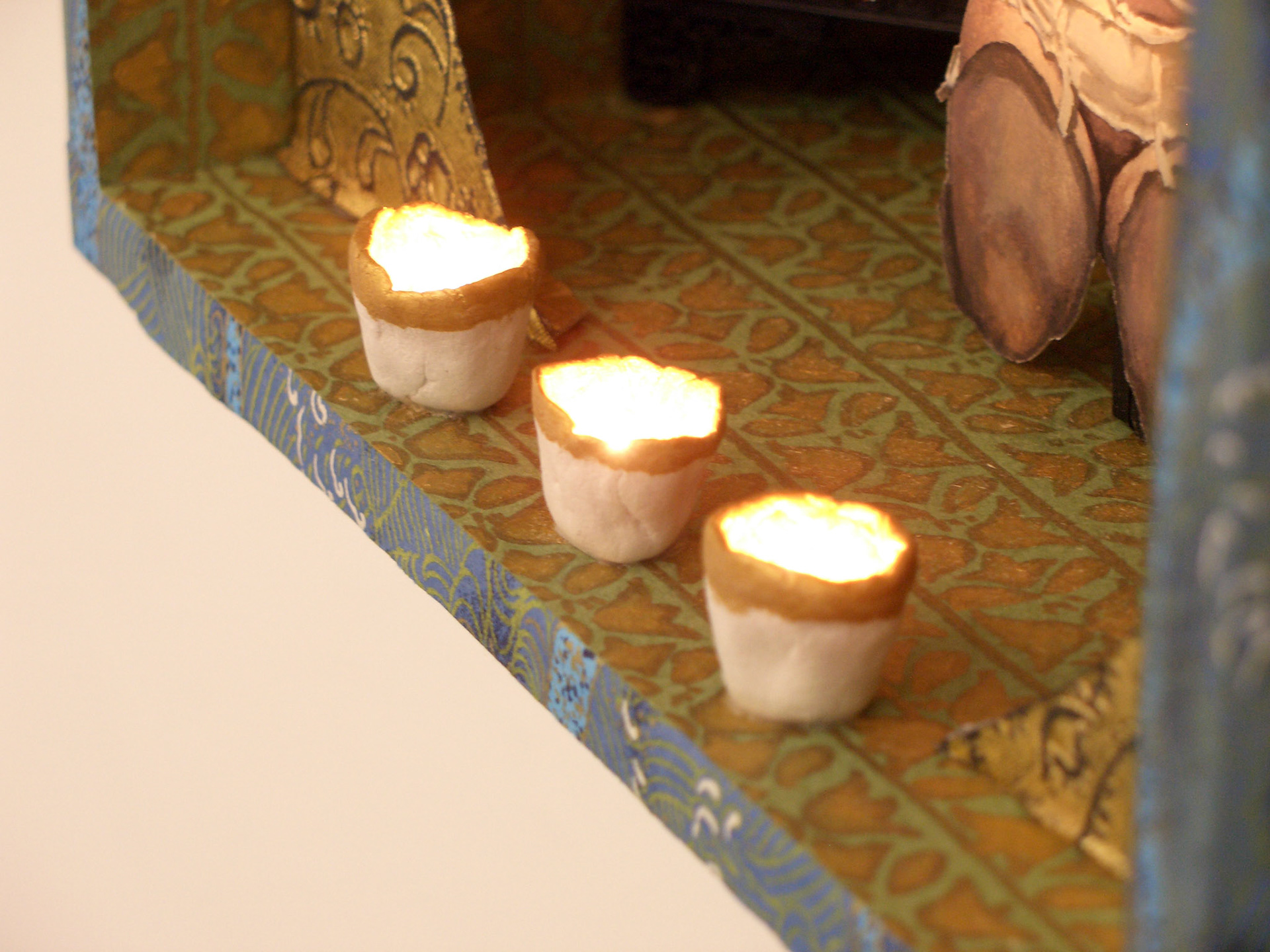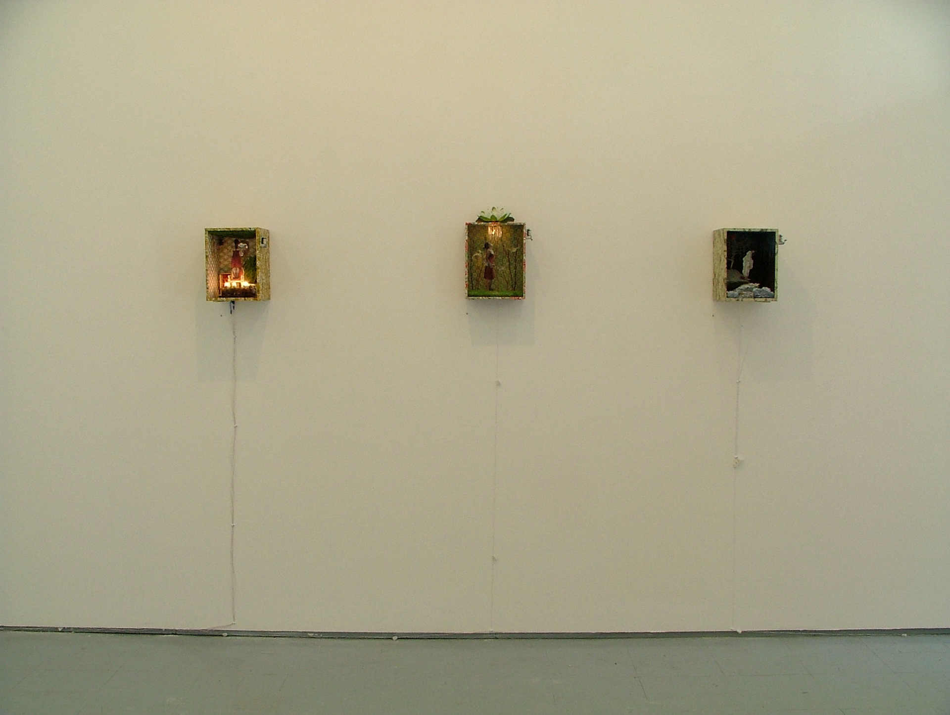 MDF, paper, oil, acrylic, clay, wire, lights, found objects, transformer, music box, string, timber